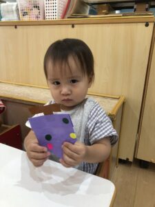 シールを剥がして自分でペタッと貼る事が出来るぱんだ組さん!制作が大好きでいつも集中して取り組めています!