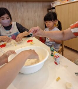そんな お散歩を楽しんだ後、小麦粉粘土で遊びました。