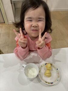 今日のおやつは何が入っているかな〜?と聞いてみると、