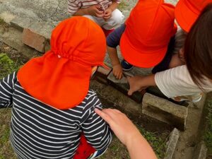 ダンゴムシを見つけるとお友だちと顔を突き合わせてダンゴムシの動く様子を見ています。