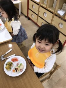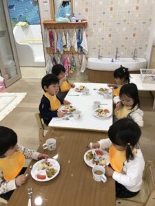 お昼ご飯は、みんなと一緒に「いただきまーす!」