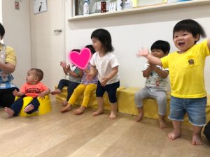 - 雨の日でもそれぞれのクラスで楽しく過ごしています!うさぎ組さんとぱんだ組さんは、お絵描きの後マットを使って寝転がりながらコロコロ転がってみたり、ハープをバトンがわりにして、プチリレーをしたりして身体を動かしました!汗をかいてるお友達もいました💦