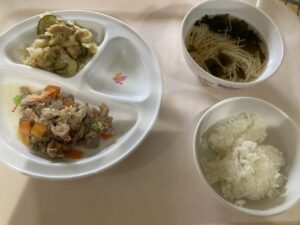 スパゲティミートソース(ケチャップが主体の甘めなソースです)/ポテトサラダ